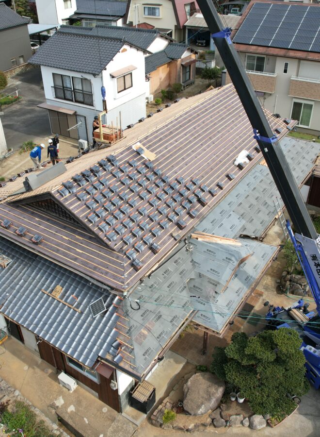 本田工業では、屋根・瓦の修理や交換、葺き替えはもちろん、ドローンを活用した事前点検も行い、災害に備えた対策をサポートします。