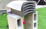 コンクリートブロックの上に瓦を積み上げるだけで、本格的に瓦割りができちゃいます! 瓦割りの様子は、写真を撮るのもヨシ!!