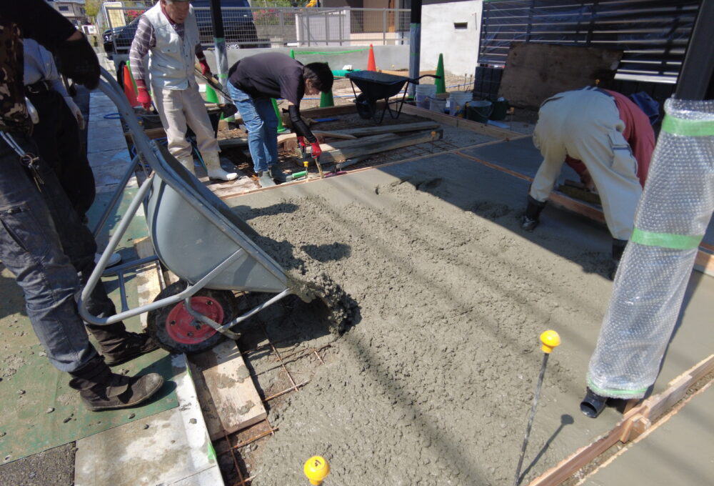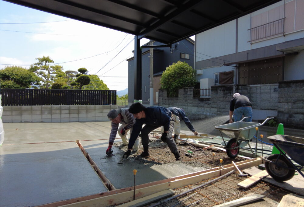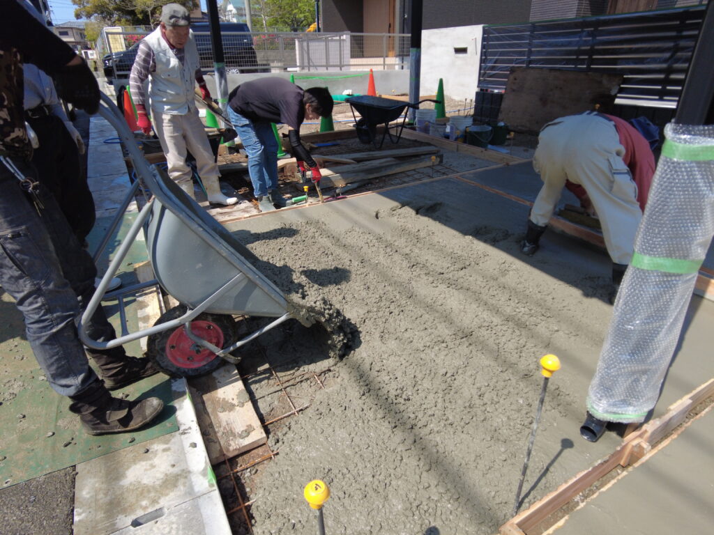 お庭と駐車場部分をコンクリートで固めていきます。