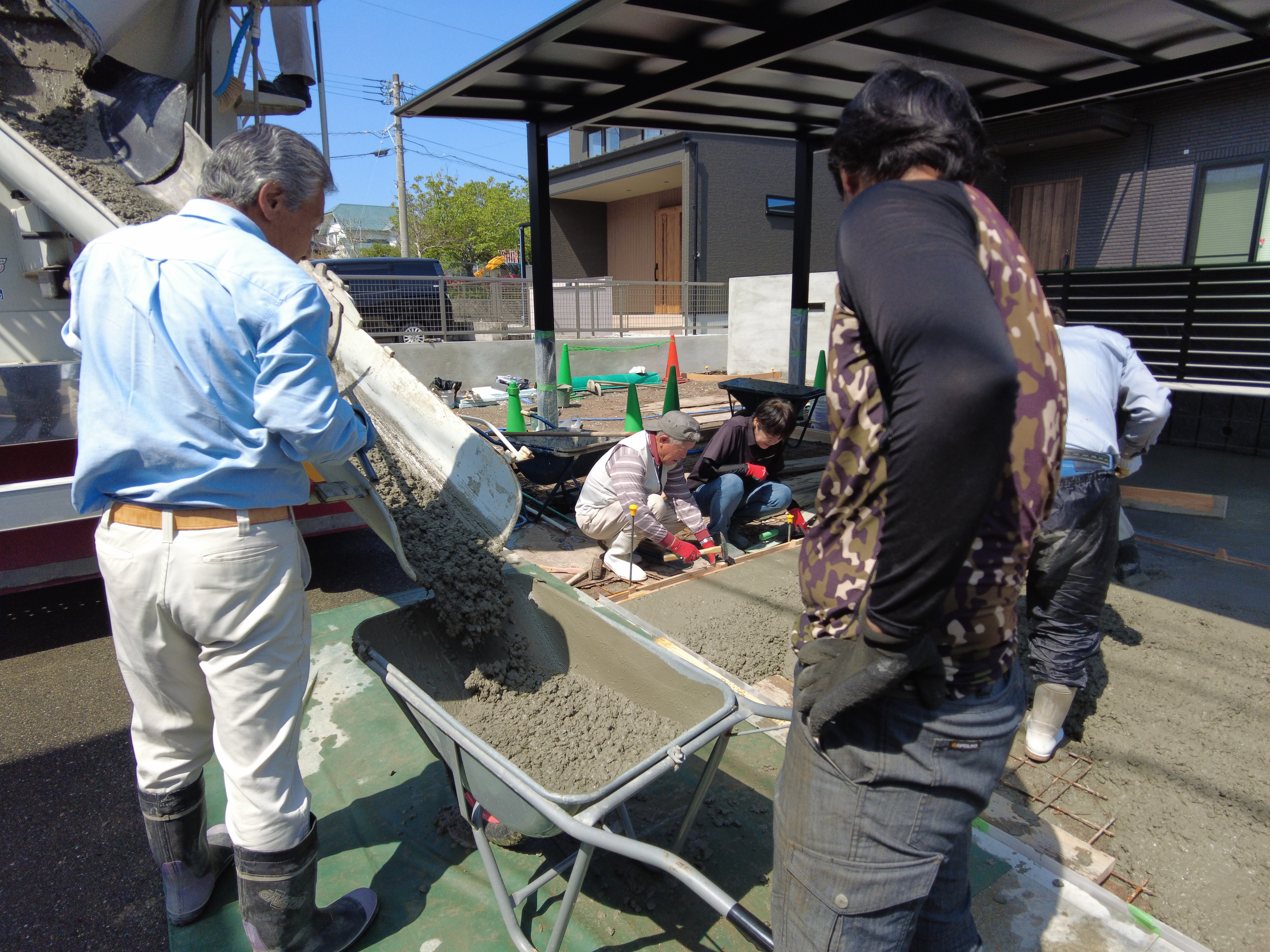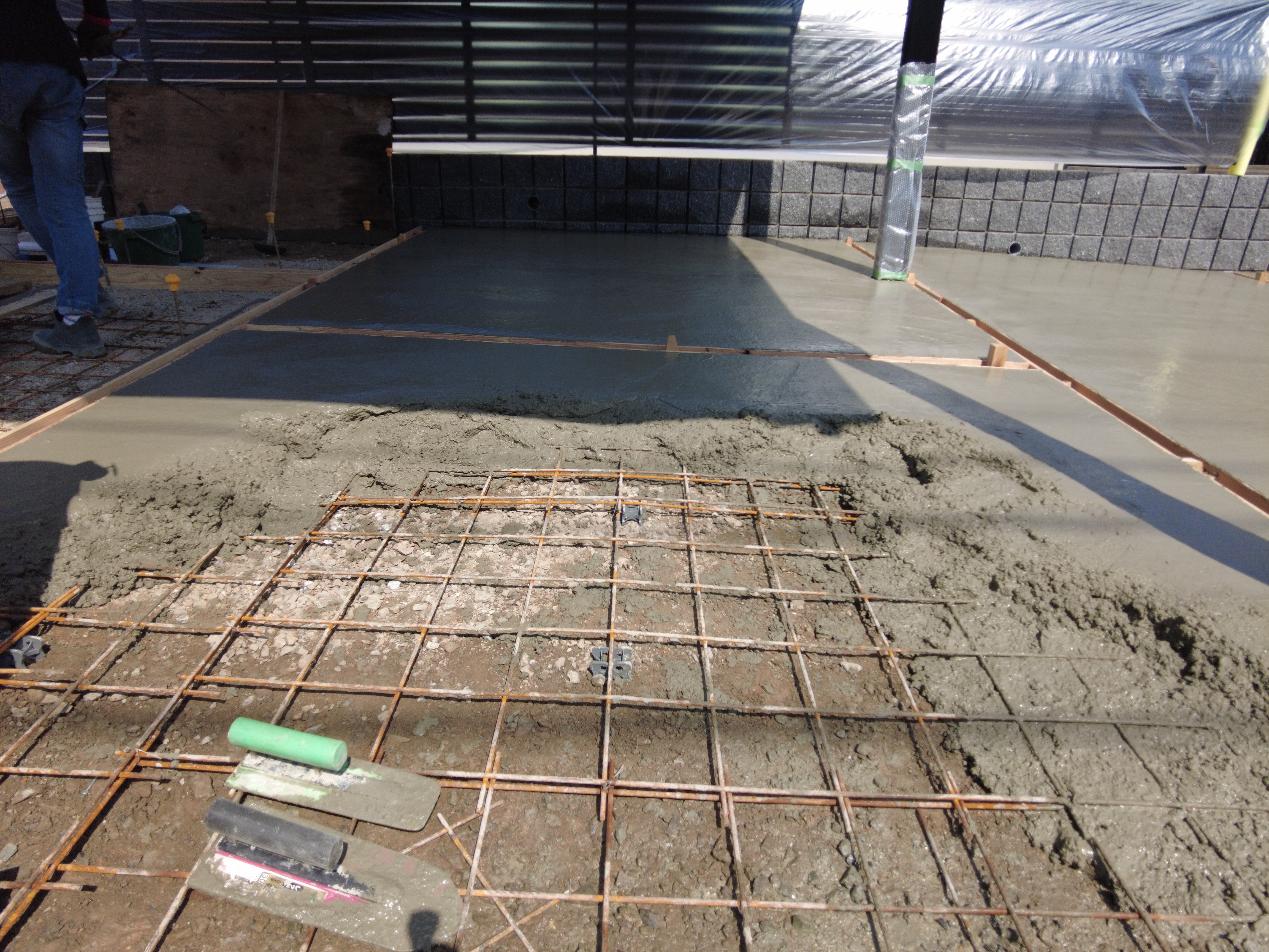 お庭と駐車場部分をコンクリートで固めていきます。